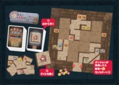 タイルを配置することでだんだんダンジョンが出来ていきます。入口からダンジョンに入り、壁を上手く使ってモンスターを回避します。奥の方にはたくさんの財宝がありますが、その分モンスターに遭遇する危険も高まります。16枚のタイルを置き終えたら、ゲーム終了です。出合った財宝(+1点)とモンスター(-2点)を数え、最も点数の高い人が勝者となります。