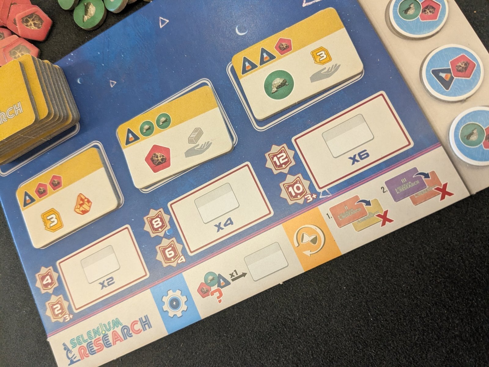 •シャトルフェイズ:各プレイヤーは開いているディスプレイからシャトルタイルをドラフトし、そのラウンドで使用できる宇宙飛行士とリソースの種類、および次のフェーズのターン順序を決定します。